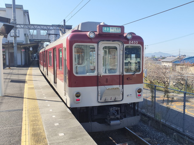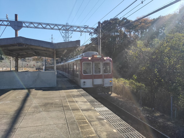 三重県から奈良県に入るこの区間は急行電車でも名張で通過待ちをしながら14駅約1時間先の桜井まで各駅停車となります。