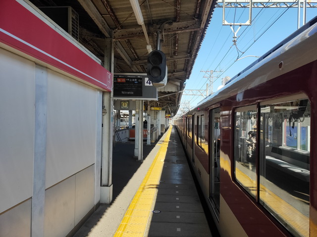 やってきたのは13:10発の4両と短い編成で、相変わらず高校生や買い物客とかが乗ってきてほどよく混んでいます。途中弥刀駅で抜かれるくらいでこちらも2分くらいの間隔で次々と停車していき、布施からは奈良線と一緒になり今里に停車しながら鶴橋に入ります。