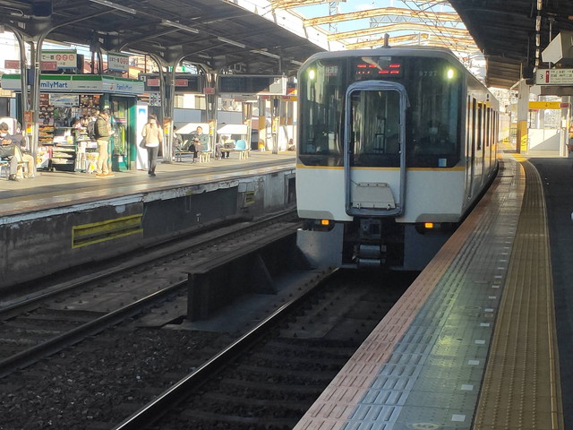 和歌山市まで40も駅があり、長時間停車は堺(8分)、高石(5分)、泉佐野(9分)と少なく、他に2回の2分停車で抜かれたりする程度ですが、所要時間は1時間57分(15:54着)と特急の59分に比べればちょうど2倍でした。
