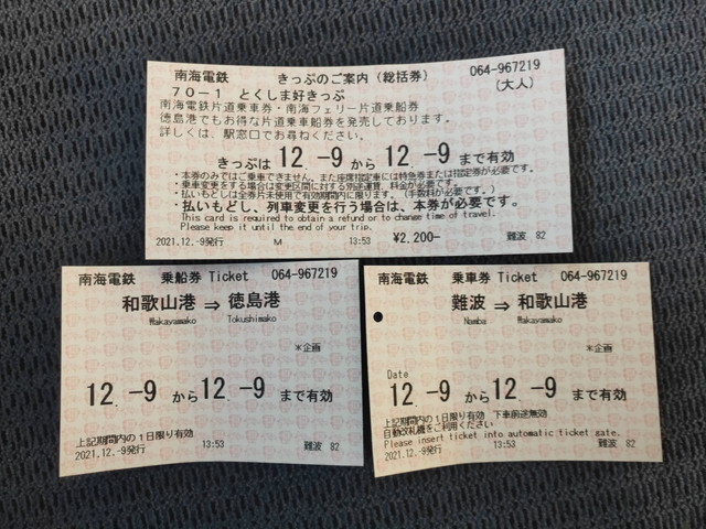 期間限定の徳島好きっぷは南海フェリーの運賃だけで南海電車どの駅からも徳島まで行けてしまうという画期的なきっぷで、なんばから和歌山港までの930円の乗車券がまるまる浮いて2,200円です。