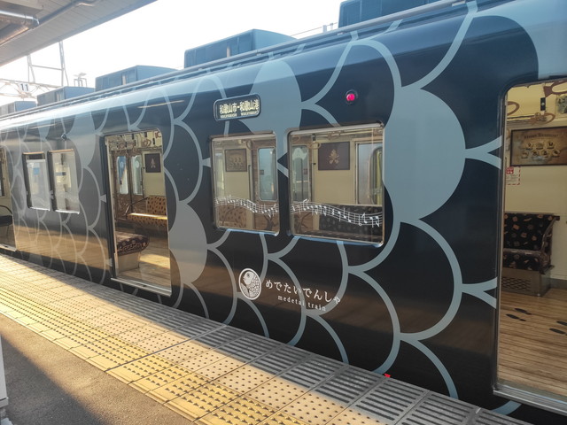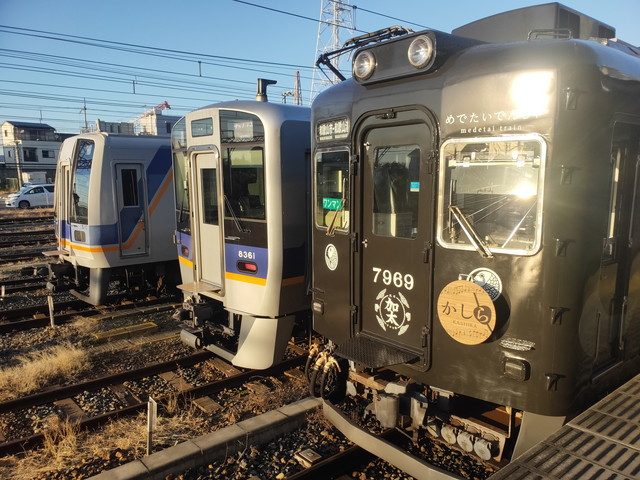 停まっているのは2両編成でもともと加太線で使われている車両でした。