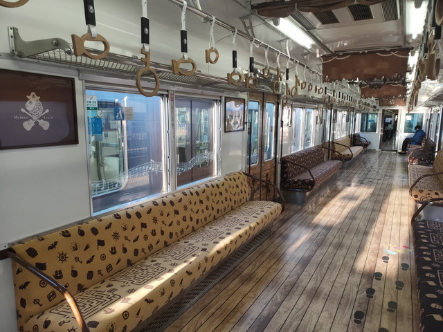 2つ扉のシールが貼られており、結構古いタイプの電車が使われているようです。
