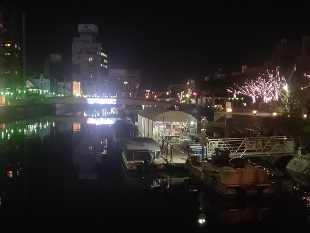 夜はクリスマスっぽいライトアップを見ながら駅地下で食べました。