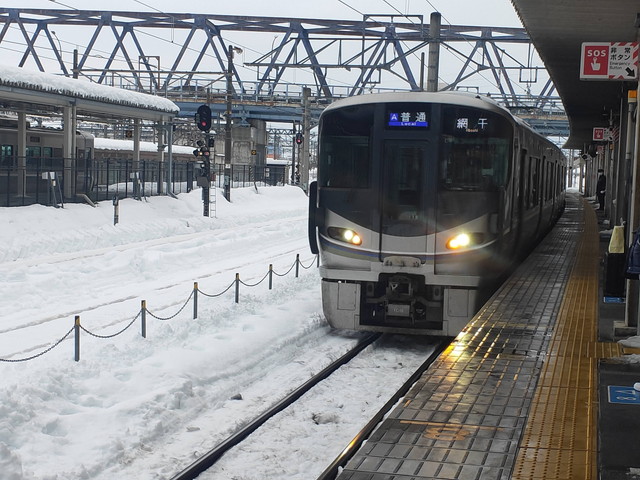 この日は強風の影響で湖西線のダイヤが乱れ始めており、サンダーバードも琵琶湖線経由になるなど影響が広がり、米原行きも5分少々遅れての到着で、乗車した時はかなり混んでました。