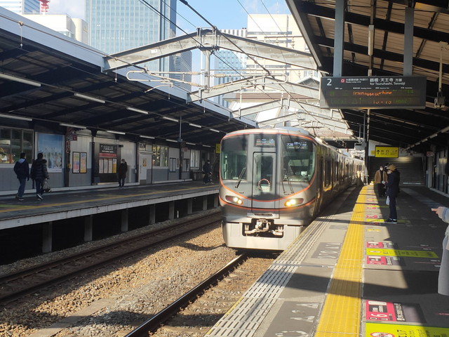 5分間隔で列車がやってきますが、環状線→大和路快速→関空紀州路快速の順でループします。
