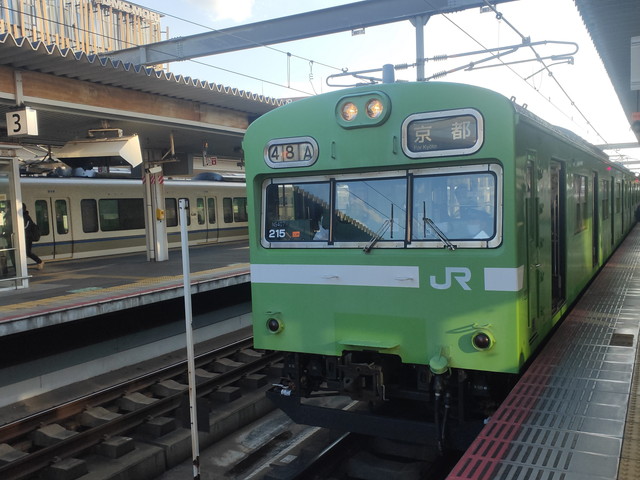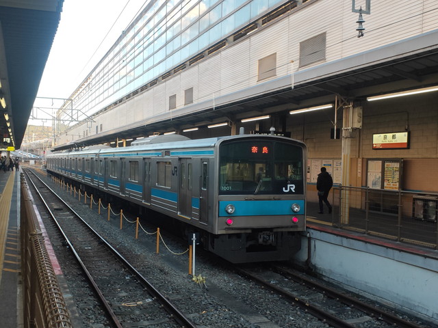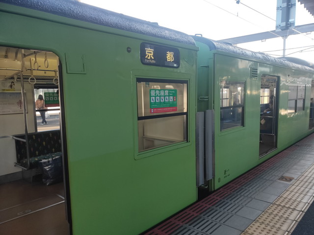 15:10発の奈良線京都行きに乗り、途中の城陽まで行きます。平城山や木津までは駅間距離が長く上り坂もあるのでモーターもいい具合に唸りをあげて走ります。