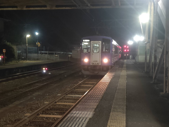 途中駅で行き違い列車の遅れの影響を受けて津には5分遅れの19:50に到着します。