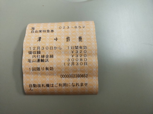 しかし、自動券売機には津から鈴鹿の自由席特急券がありません!