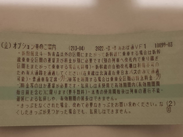 - 北海道線オプション券