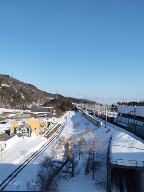 幸い除雪はされているので問題なく反対側ホームへ歩いていけました。