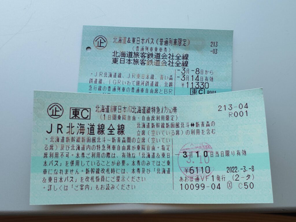 北海道&東日本パスには1日利用することができるオプション券があり、北海道新幹線の空いている席及びJR北海道内の特急列車の自由席が一日乗り放題で6,110円。利用回数の制限はありませんが、あまり多く使うのであれば北海道パスとかのほうが安くなるケースもあります。