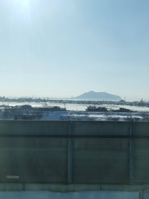 青函トンネルを20分ほどで抜けて、新函館北斗到着前に函館山が見えてきます。