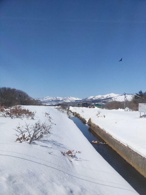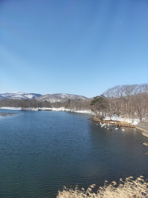 大沼駅も氷結しているものの、少し割れているところもあって鳥たちが泳いでいるのも見えて、ちょっと春の訪れを感じました。