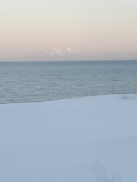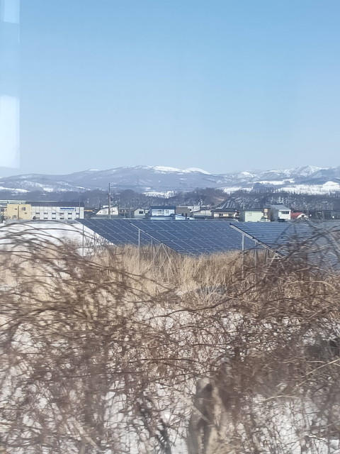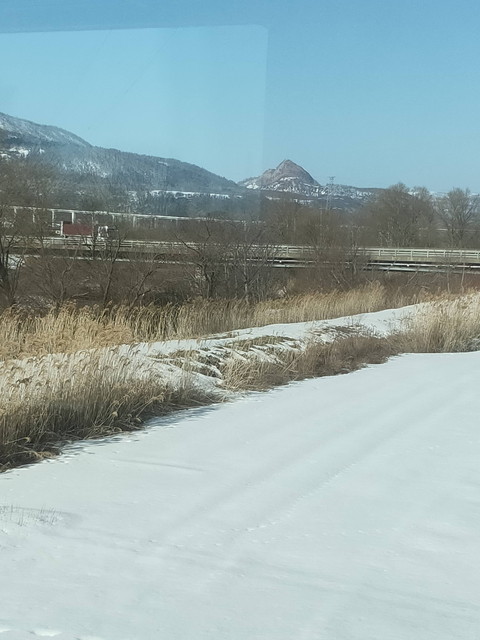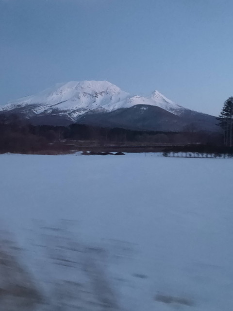 日中にのんびり普通列車で通った森と長万部の間もどんどん飛ばしていき半分くらいの時間で走り抜けます。噴火湾の向こう側には羊蹄山、駒ヶ岳とうっすらと見えました。