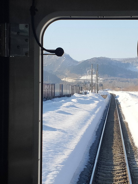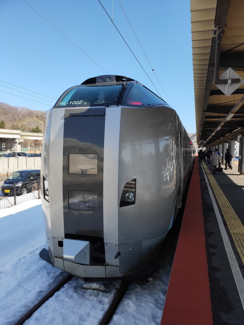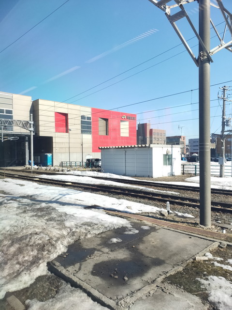 羊蹄山とかは近くの山に遮られて見えなくなってしまうので車窓的にはあまり冴えず、海側を見れば陽射しが眩しいといった感じ。スピードが速いせいか、有珠山とか昭和新山を探している内に見落としてしまいいつの間にやら東室蘭到着のアナウンスでした。