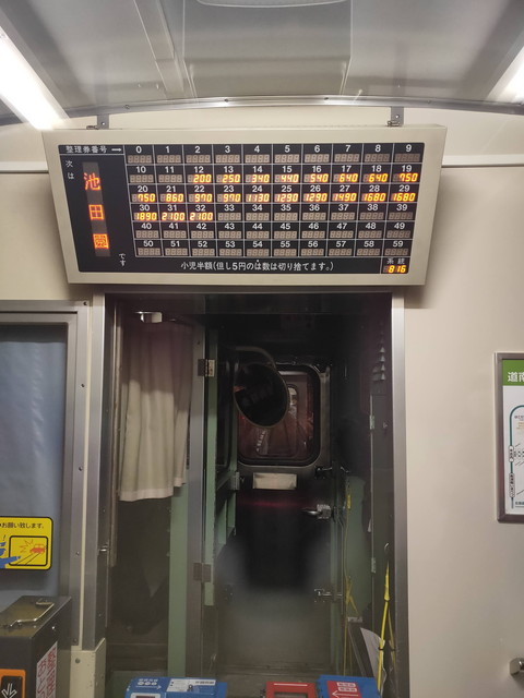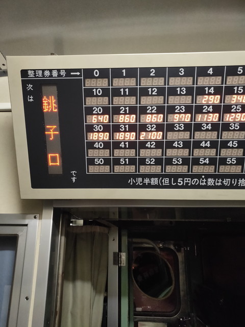夜でほとんど見えなかったので車内の運賃表を撮影しておきました。