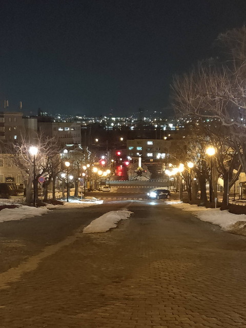 - 函館の夜景を坂道から眺める