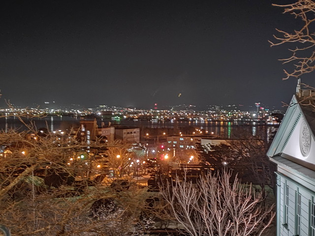 末広町で降りて、基坂を登っていき、ライトアップされた旧函館区公会堂などを見ながら八幡坂へと歩いていき、有名な場所で写真を撮ってから赤レンガ倉庫へと下りていきました。