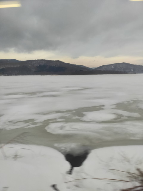 七飯駅を出ていくと新函館北斗に向かう路線と分かれどんどん奥深いところに入り、気がつくと元の線路と合流して大沼駅に到着しました。