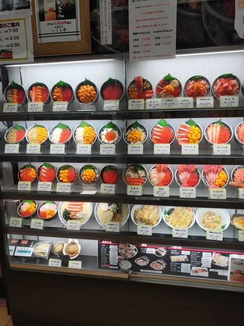 人気の店で豪華な盛り付けを楽しむ人がいたり、私のようにチープに朝市食堂二番館でいか刺し丼(550円)を食べたりまちまちです。