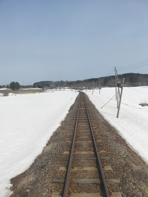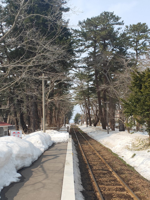 今年は雪が多く降ったようですが、除雪もしっかり行われたとのことで50分ほどで津軽中里駅まで行くことができました。荒れると1時間少々かかることもあるそうです。山道のところには融雪装置が付けられて温水で盛んに雪を融かしていました。