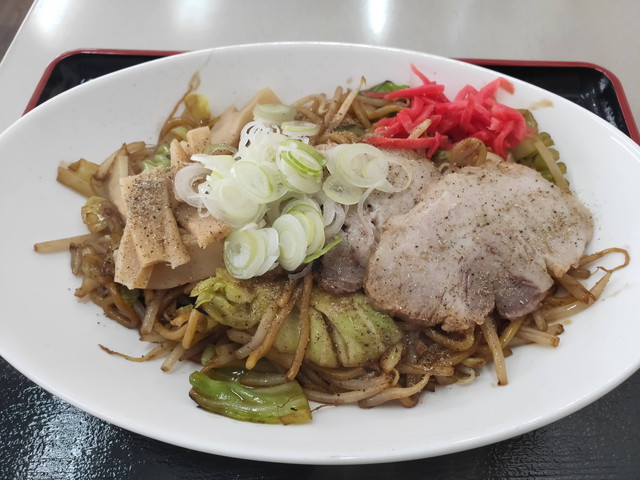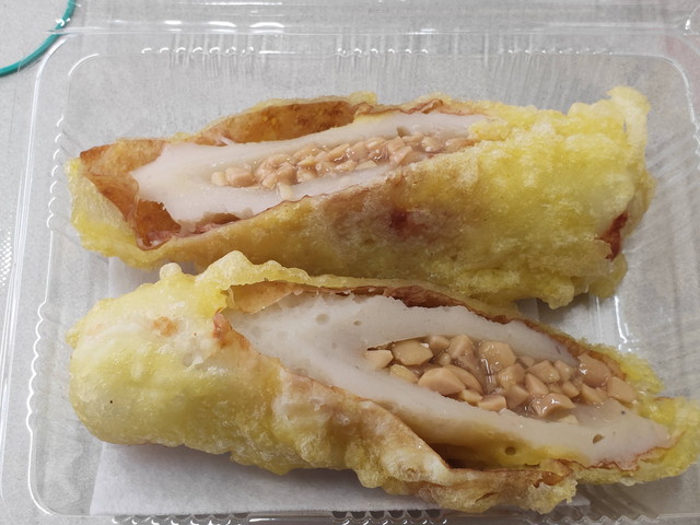 食べたのはもち麦焼きそば(650円)と納豆入りちくわの天ぷら(100円)。