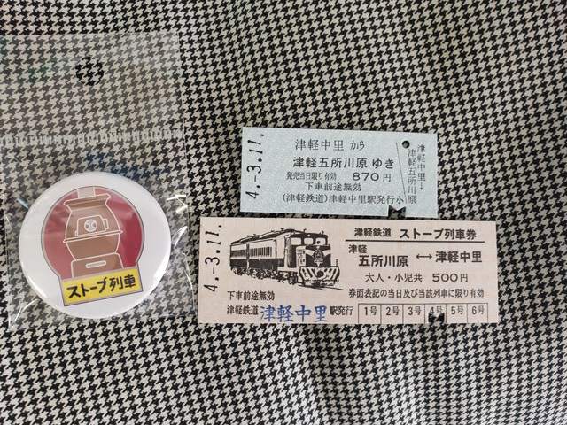 ストーブ列車券(500円)と缶バッジ(250円)も購入しました。