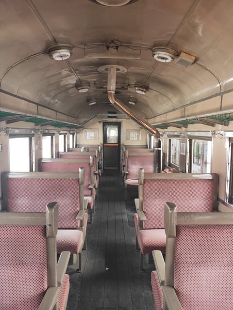 パワーのあるディーゼルカーが牽くので、機関車の牽く感じが無いのは残念ですが、古びた車内の雰囲気は十分に味わえます。一番後ろはガラス越しになりますが過ぎていく景色も楽しめます。