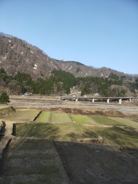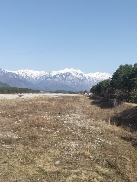 豊科までは国道147号線と並走し、川の対岸5キロくらい離れたところには篠ノ井線の明科駅や田沢駅があります。