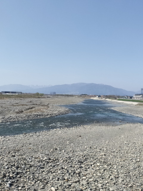 少し大回りをするような感じで中萱駅、一日市場駅を通り、梓橋駅を出るとすぐに梓川の流れを渡ります。上高地から流れてくるのもあってか水が透き通っていました。
