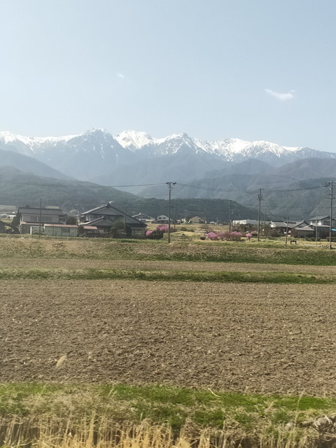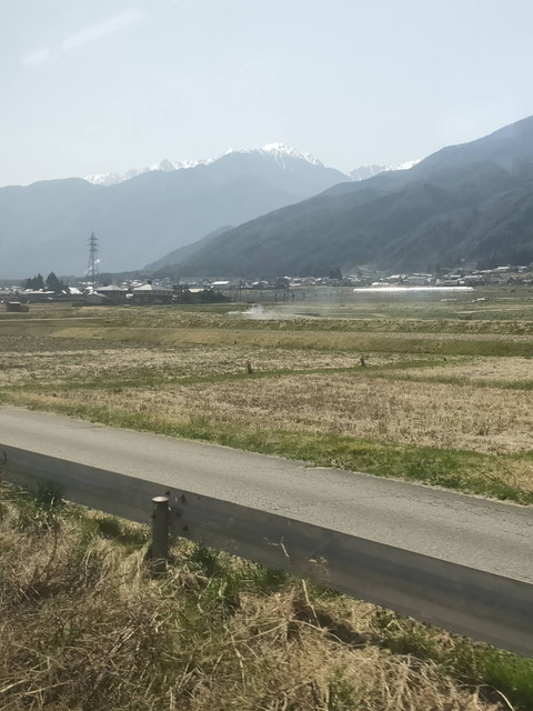 進行方向左側には南アルプスが見えてきたりかなり標高の高いところを進み、天竜川沿いにできた街並みを見下ろすような眺めが続きます。