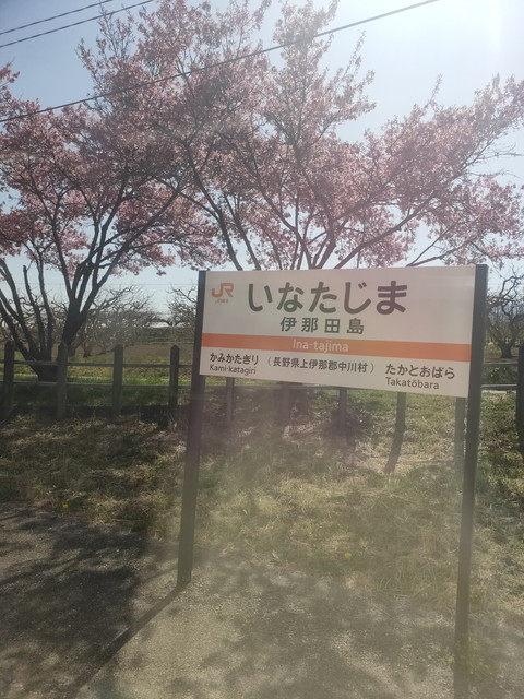 伊那市駅で高遠の桜を見に行くと思われる人が多く下車しますが、帰りの人も乗ってきます。