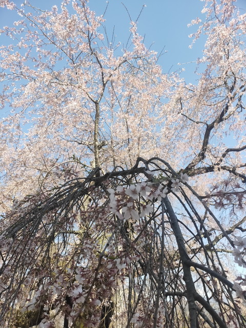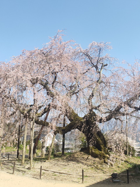 さらに300mほど歩いていくと舞台桜と石塚桜を見ることができました。少し散りはじめていたもののしだれ桜の貫禄が十分にあります。