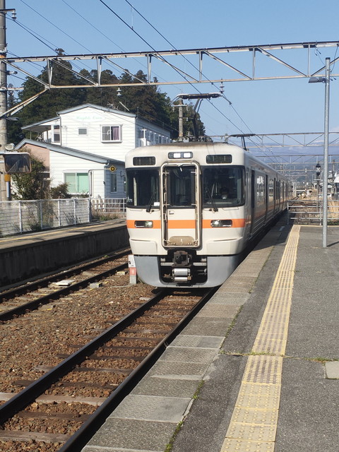 桜町までが313系転換クロスシートの3両、伊那上郷行きは211系の3両だったのですが、豊橋行きは再び313系ボックスシートの2両でちょっとガッカリ。幸い空いていたのと、飯田駅で乗客の入れ替えがあったのでボックス席の進行方向窓側は確保できましたが、ボックスシート自体は2人がけや3人がけの状態でした。