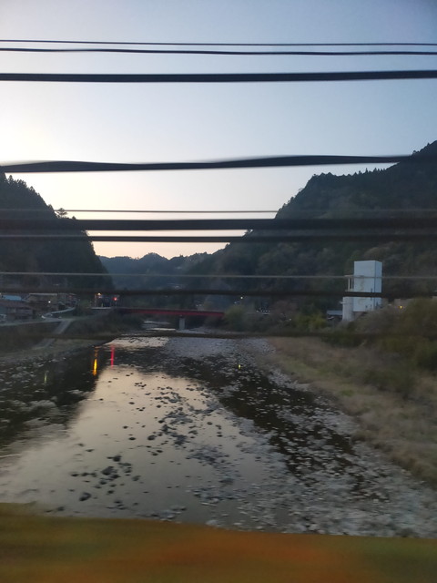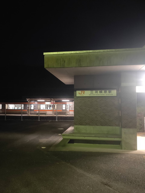 三河槙原駅は愛知県民の森の最寄り駅で、日中ならば宇連川の清流に板を敷き詰めたような渓谷がしばらく続きますがもはや真っ暗です。