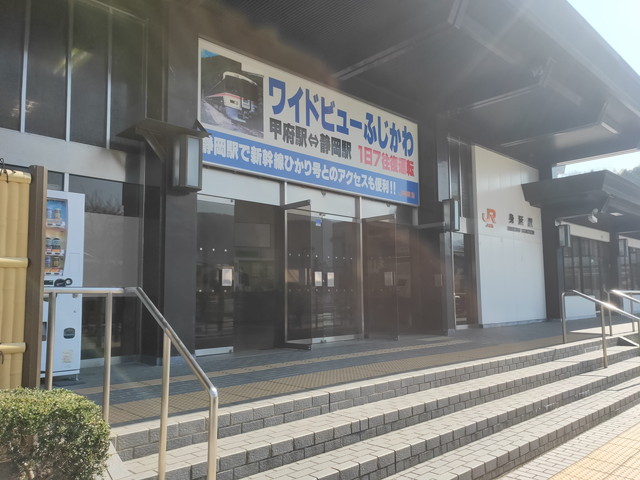 車窓の左に身延山に向かうロープウェイを眺めつつ走っていき、富士川の支流である常葉川を渡ると下部温泉の観光案内や建物が目立ってきて下部温泉駅に到着します。