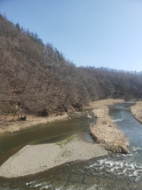 近くの山が迫ってくるので遠くの眺望がきかないので、川を渡るところを地図アプリで追いかけながら見ていくと時折河原に動物がいたりすることもあるので、ここで昼寝するのはちょっと勿体ない感じですね。
