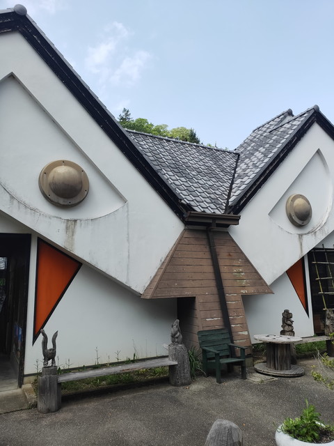 ブッポウソウをイメージした駅舎は車内から眺めるとよくわかります。