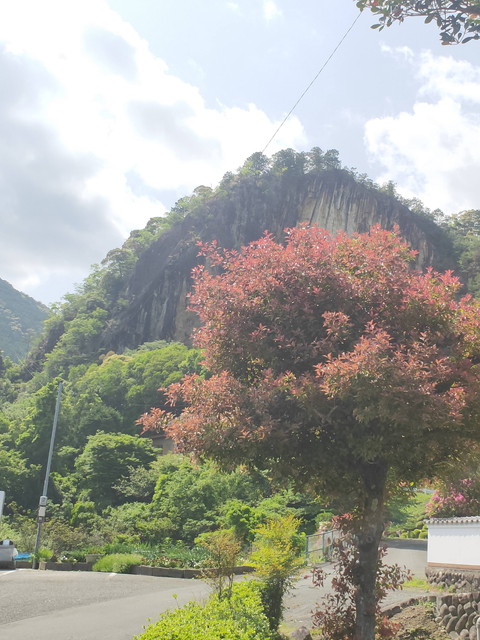 柱状節理の見える山が迫ってきていて深呼吸したくなるような場所です。