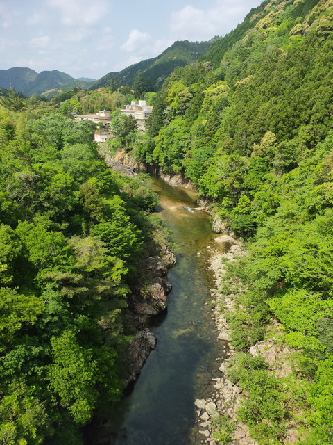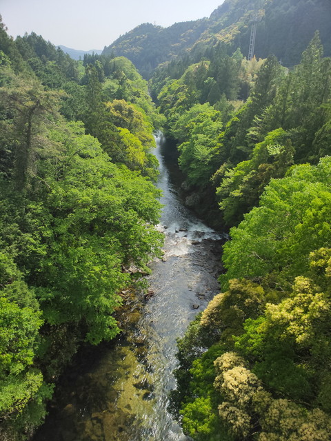 最後の2枚は駐車場に入る前に湯谷大橋のところから撮影したもので、かなり川まで高さがあることが分かります。