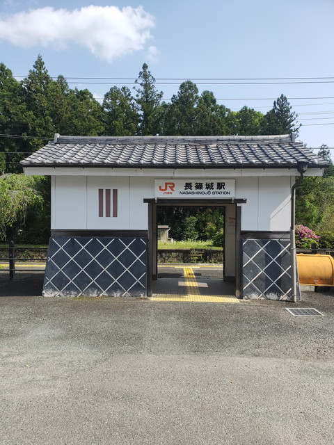 設楽原の戦いで有名な長篠城が近い駅なので、駅舎もそのイメージを模して作られています。