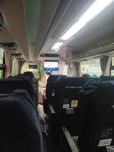 乗車したバスは徳島交通のエディ号で3列シートです。徳島駅を通らずに阿南、海部、宍喰を通りながら室戸岬方面に直通する高速バスで、5割ほどの乗車率でした。