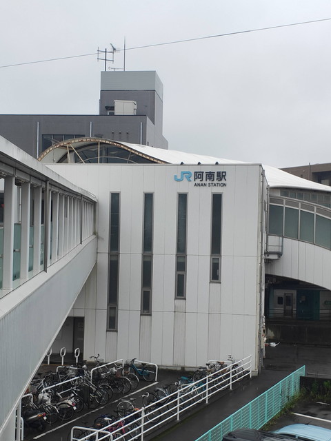 淡路島内で休憩中にコンビニで昼食を買うなどしていくと5分ほどの遅れで阿南駅前に到着予定。