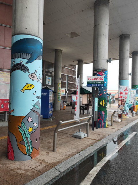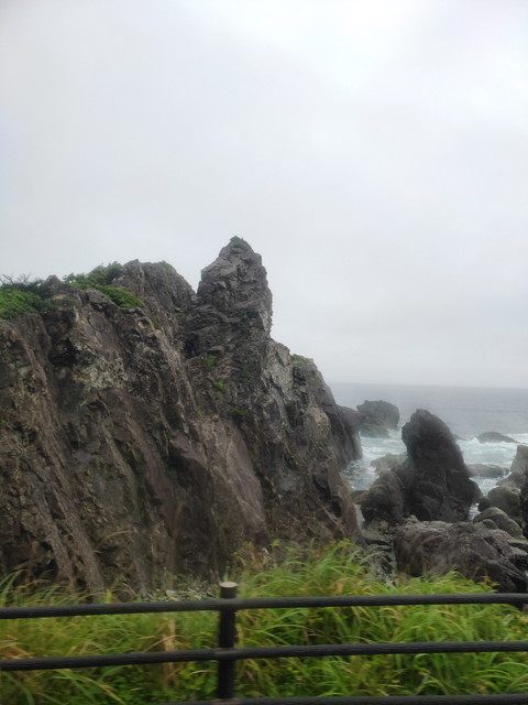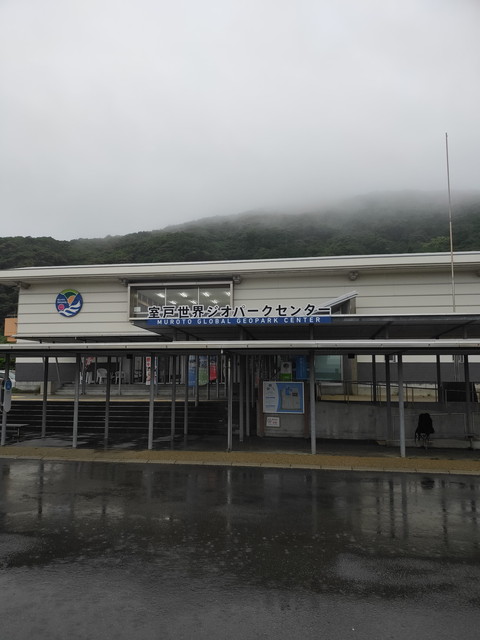 室戸岬を経由するバスがやってきて、途中の室戸岬でずっと一緒だった人が下車しました。なかなか荒っぽい岩肌の景観を眺めるも雨が降り続いてるので土佐らしさはありませんが。