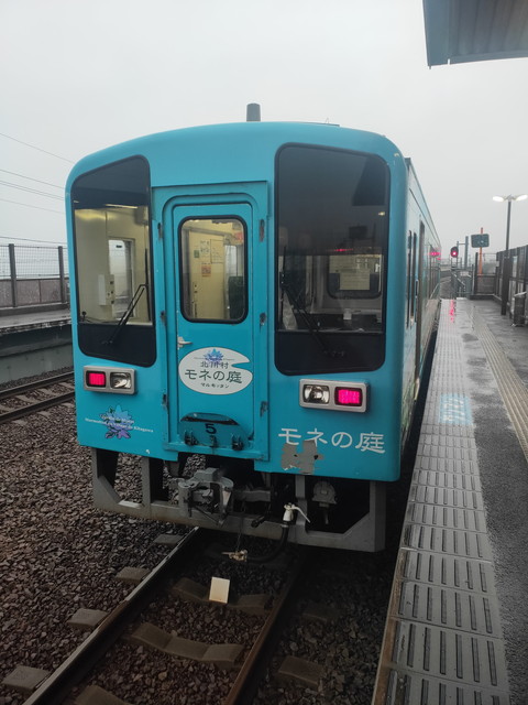 そのまま後免駅まで行っても待ち時間が長くなるだけなので、あかおか駅で下車して当駅始発の普通列車に乗り換えます。こちらは1両のモネの庭(北川村に財団に認められた庭がある)車で快速と比べると随分と空いていました。
