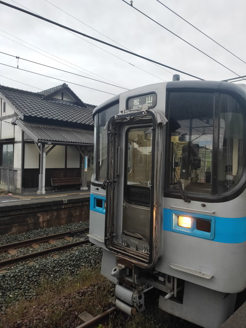 雨が降っていたので壬生川駅まで歩いていくと普通列車が停まっていたので、今治まで先着するのを車掌に確認して乗り込みます。