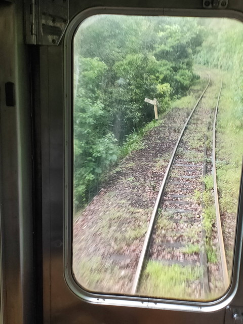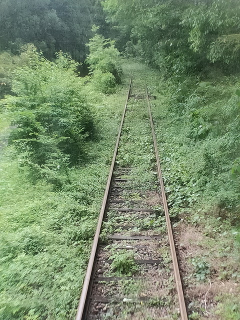 線路上に草がぼうぼうと生えてすっかりローカル線風情のところをゆっくり走っていきます。