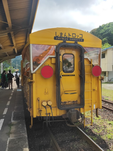 高知県最初の西ヶ方駅を過ぎると次が江川崎駅。ここで3分ほど停車する間にトロッコに乗り換えたり、急いでトイレに駆け込む人もいます。