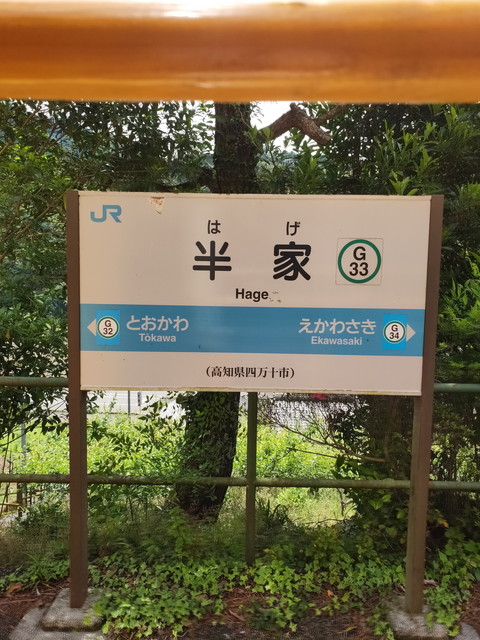 最初の停車駅である半家駅は、言い伝えによれば元平家の落人が名前を変えて平の上の棒を下げて半としたということ。