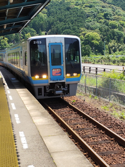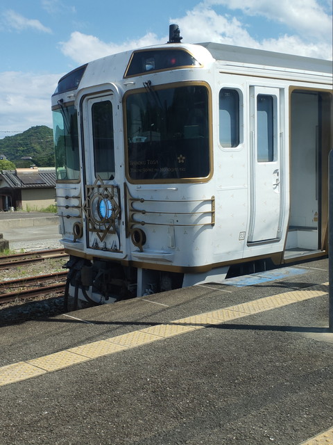 窪川ではそれほど乗る人もなくホッとしていたのもつかの間、土佐久礼で反対側に観光特急の志国土佐時代の夜明けのものがたりが停まっていて、そこから折り返しで乗る人が大挙しており一気に満席近くになります。グリーン車扱いの食事がメインの列車ということもあり、出来上がっていい気分で大声で話しだしたりとあんまりいい気分ではなかったです。